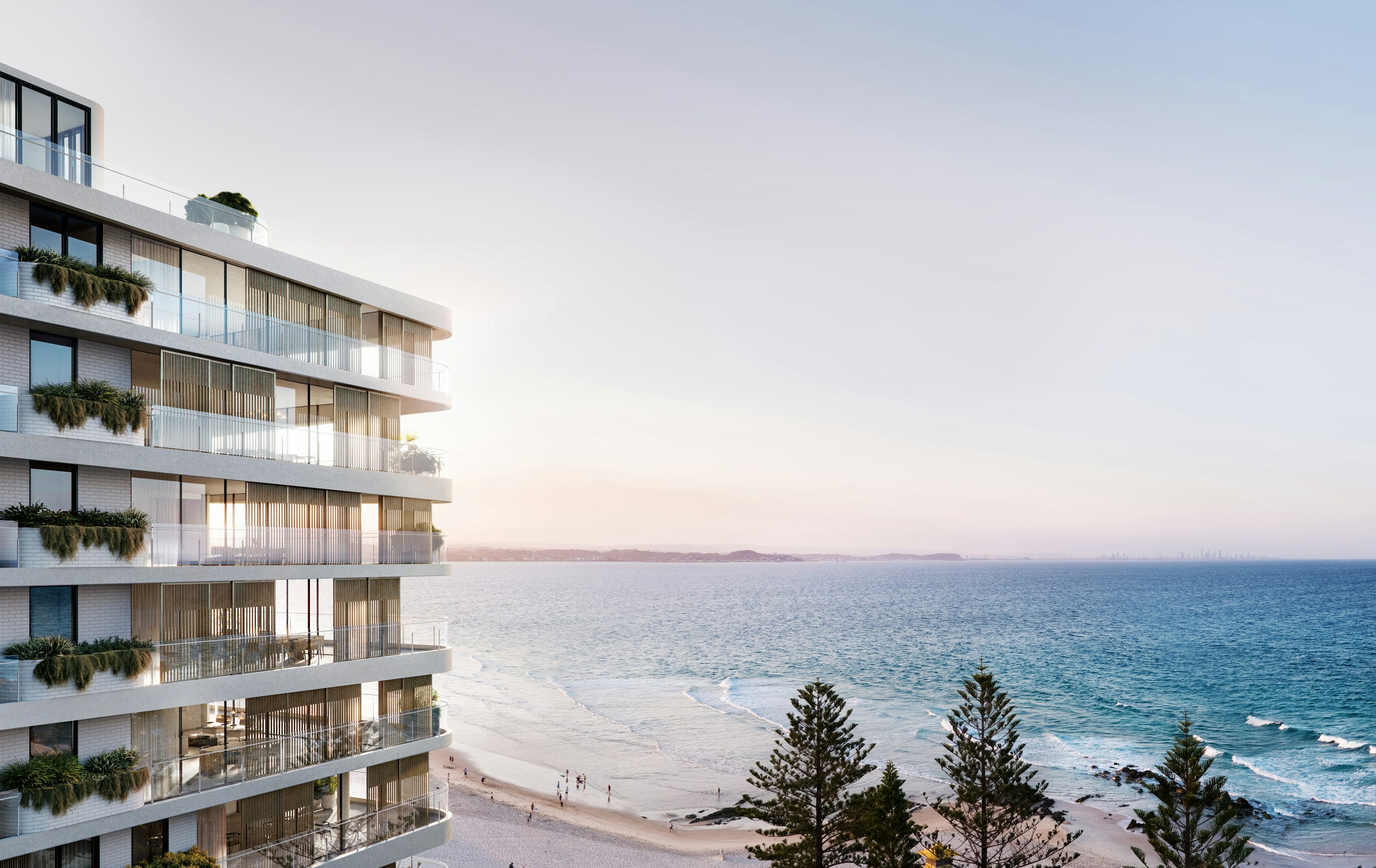 The highly anticipated, luxury beachside Flow Residences offer panoramic views over Rainbow Bay and Snapper Rocks for future residents. Due for completion in 2022, the 12-storey development will have 22 unique apartments including a one-of-a-kind double storey penthouse and a combination of full floor and half floor apartments. The exclusive residents’ club will have a private pool, bbq area, guests’ entertainment and dining room, wine cellar, gym and wellness room, plus a surfboard locker room.